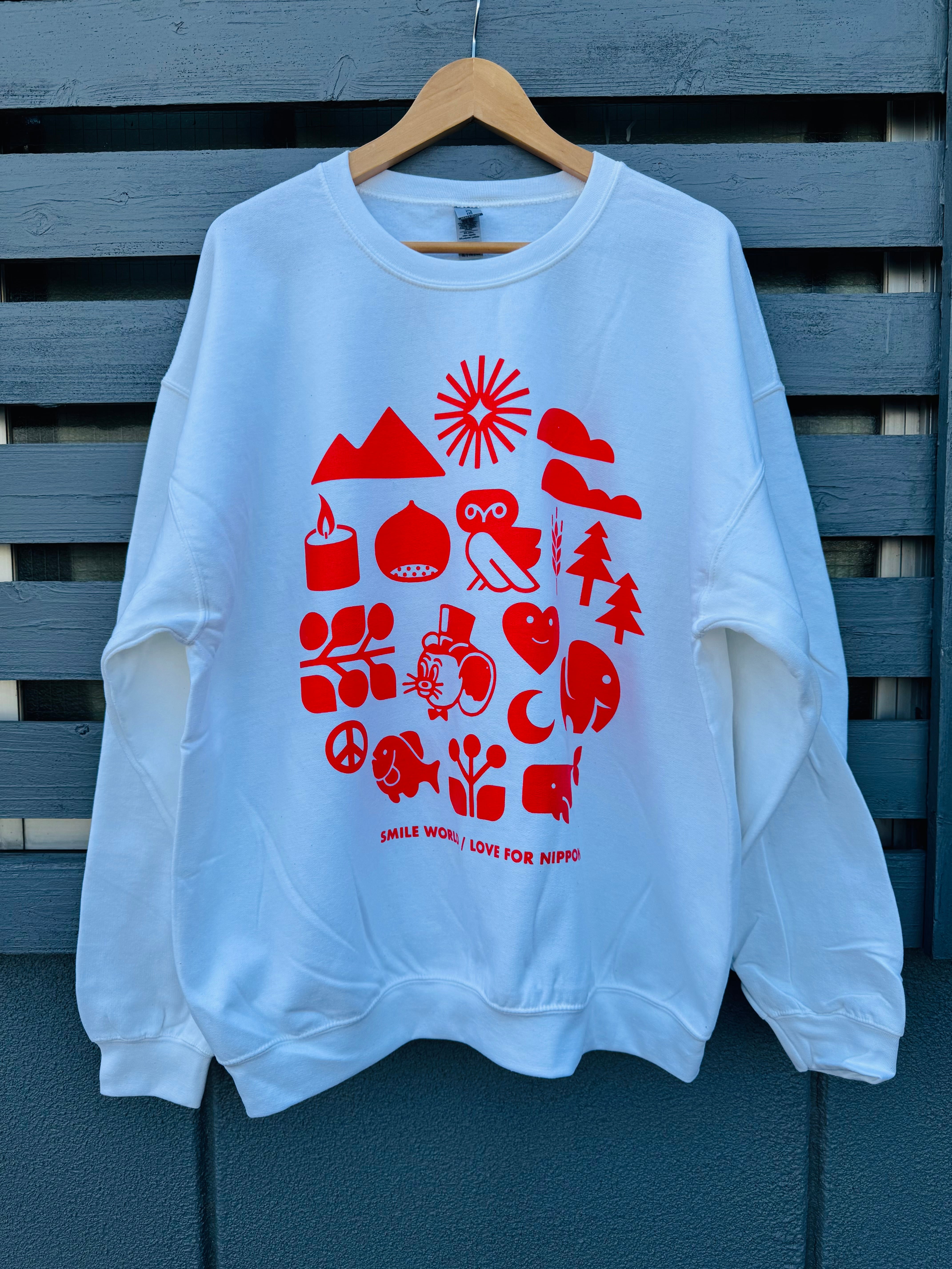SOTE × Jerry Ukai(ジェリー鵜飼) " SMILE WORLD " トレーナー(LOVE FOR NIPPON)〈WHITE/FP RED〉