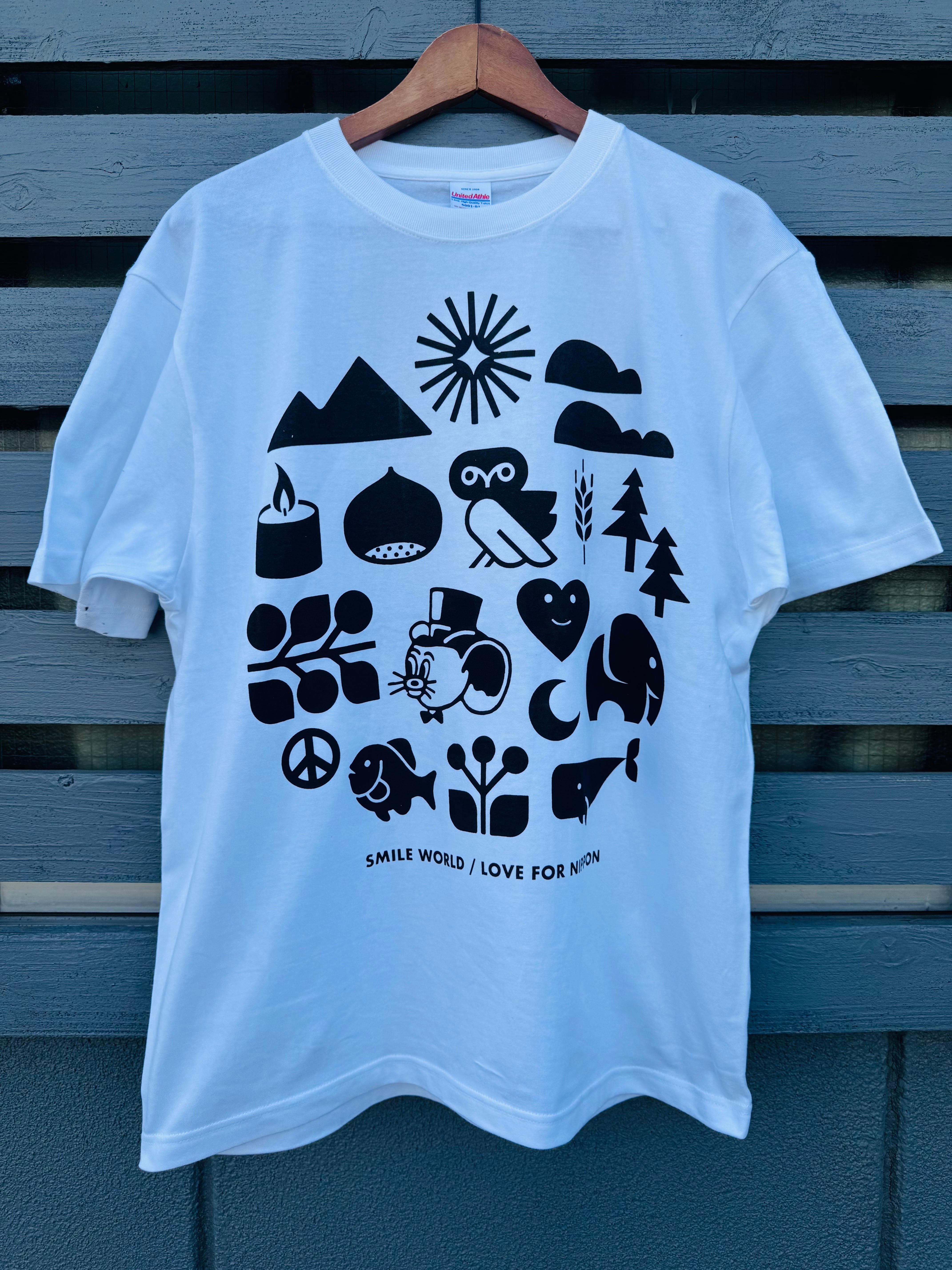 SOTE × Jerry Ukai(ジェリー鵜飼) " SMILE WORLD " Tシャツ(LOVE FOR NIPPON)〈WHITE/FP BLACK〉