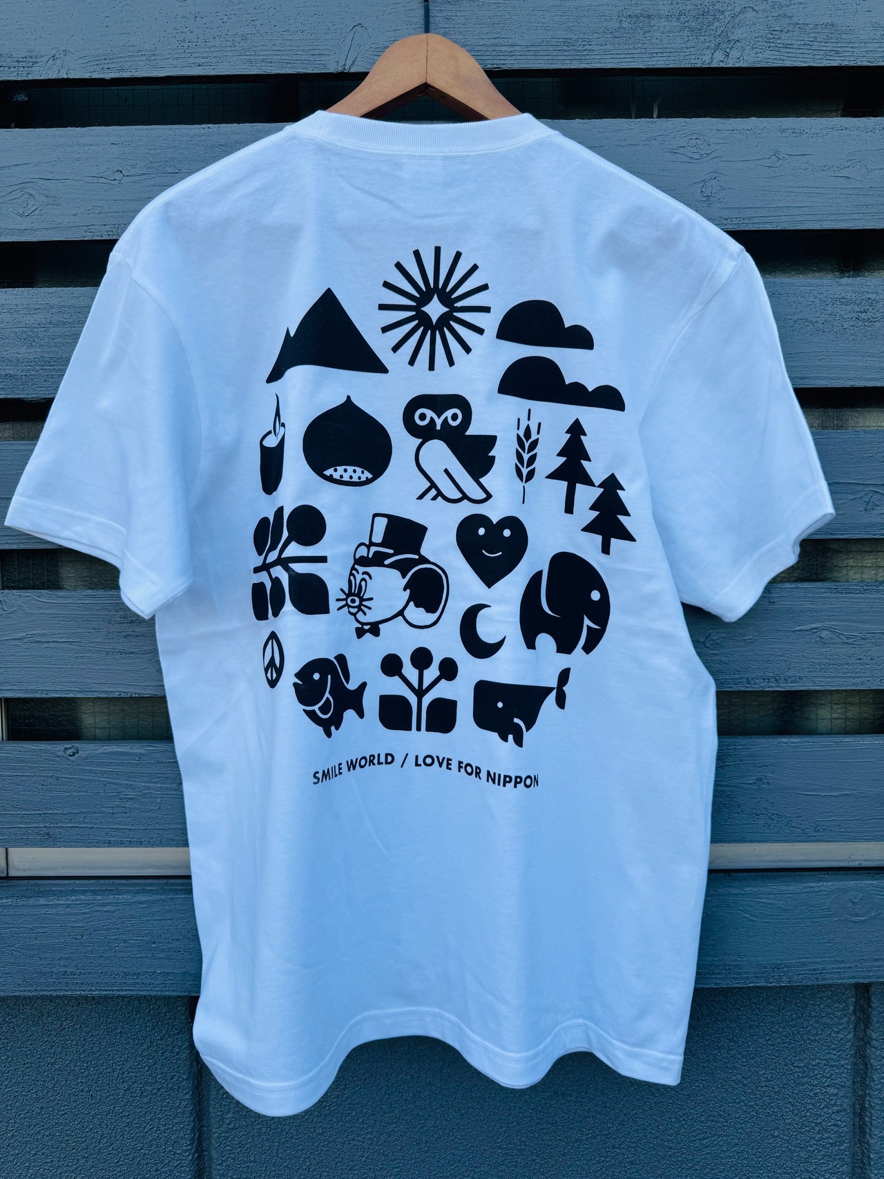 SOTE × Jerry Ukai(ジェリー鵜飼) " SMILE WORLD " Tシャツ(LOVE FOR NIPPON)〈WHITE/BKP BLACK〉
