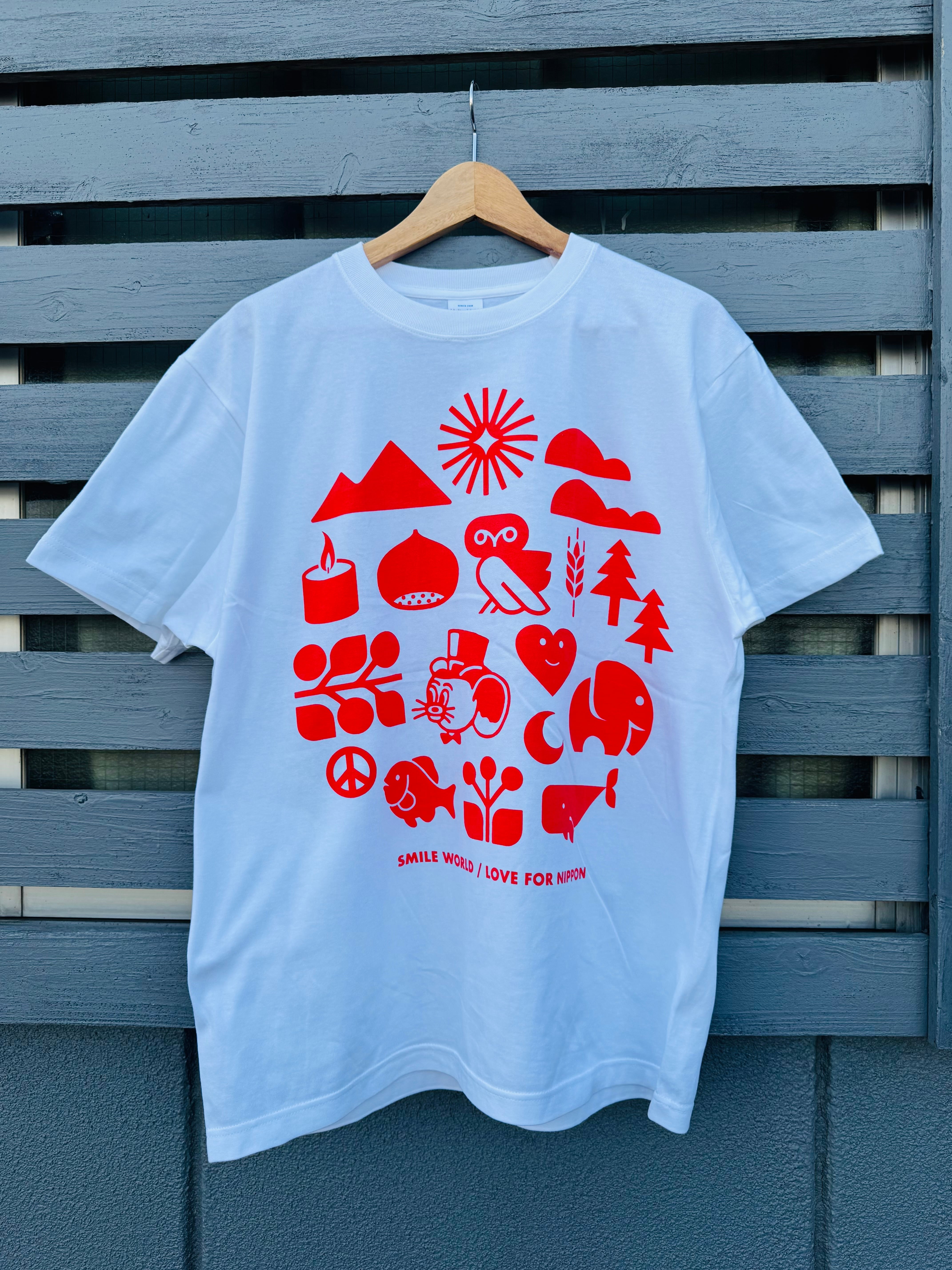 SOTE × Jerry Ukai(ジェリー鵜飼) " SMILE WORLD " Tシャツ(LOVE FOR NIPPON)〈WHITE/FP RED〉