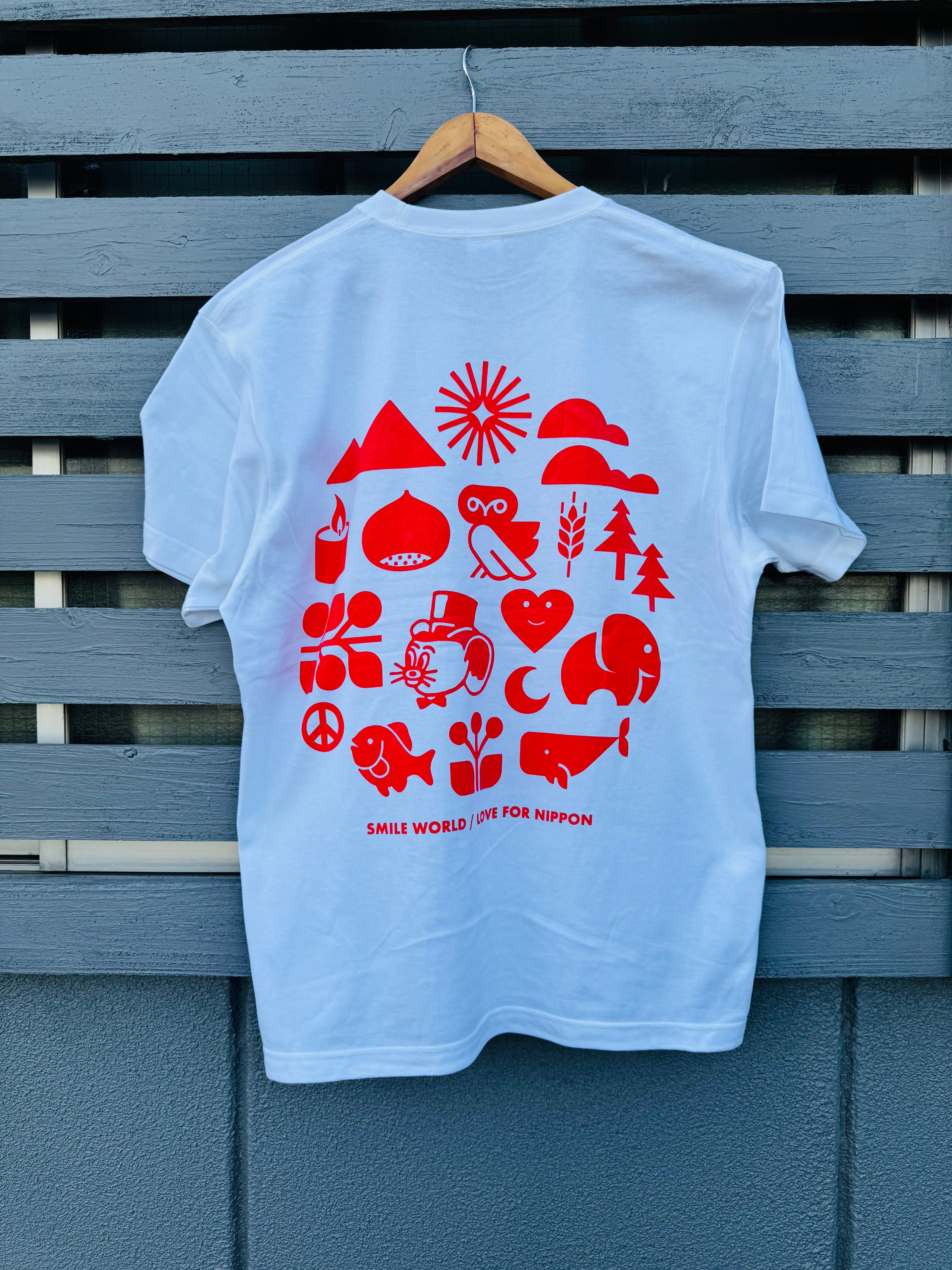 SOTE × Jerry Ukai(ジェリー鵜飼) " SMILE WORLD " Tシャツ(LOVE FOR NIPPON)〈WHITE/BKP RED〉