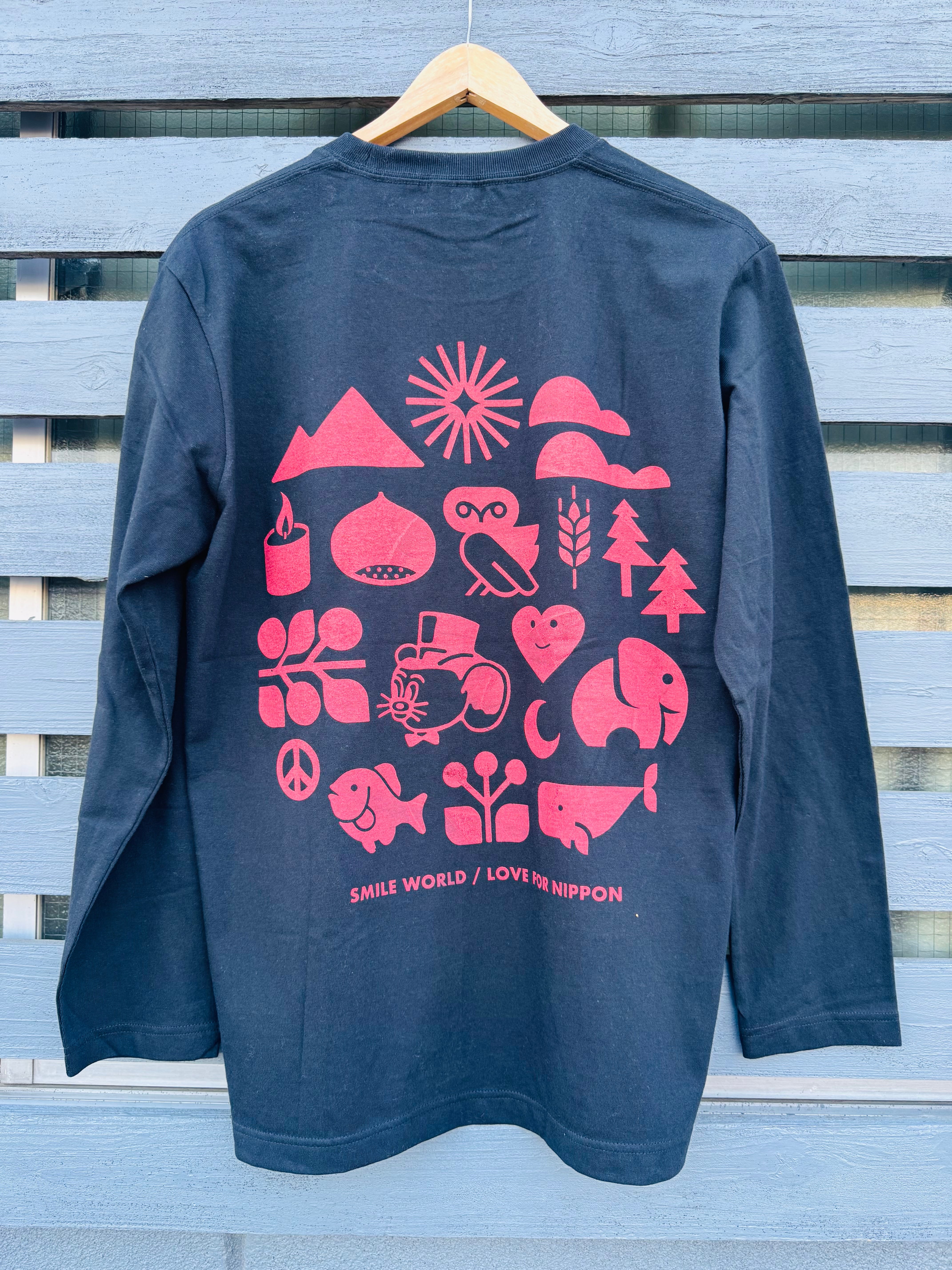 SOTE × Jerry Ukai(ジェリー鵜飼) " SMILE WORLD " ロングTシャツ(LOVE FOR NIPPON)〈BLACK/BKP RED〉