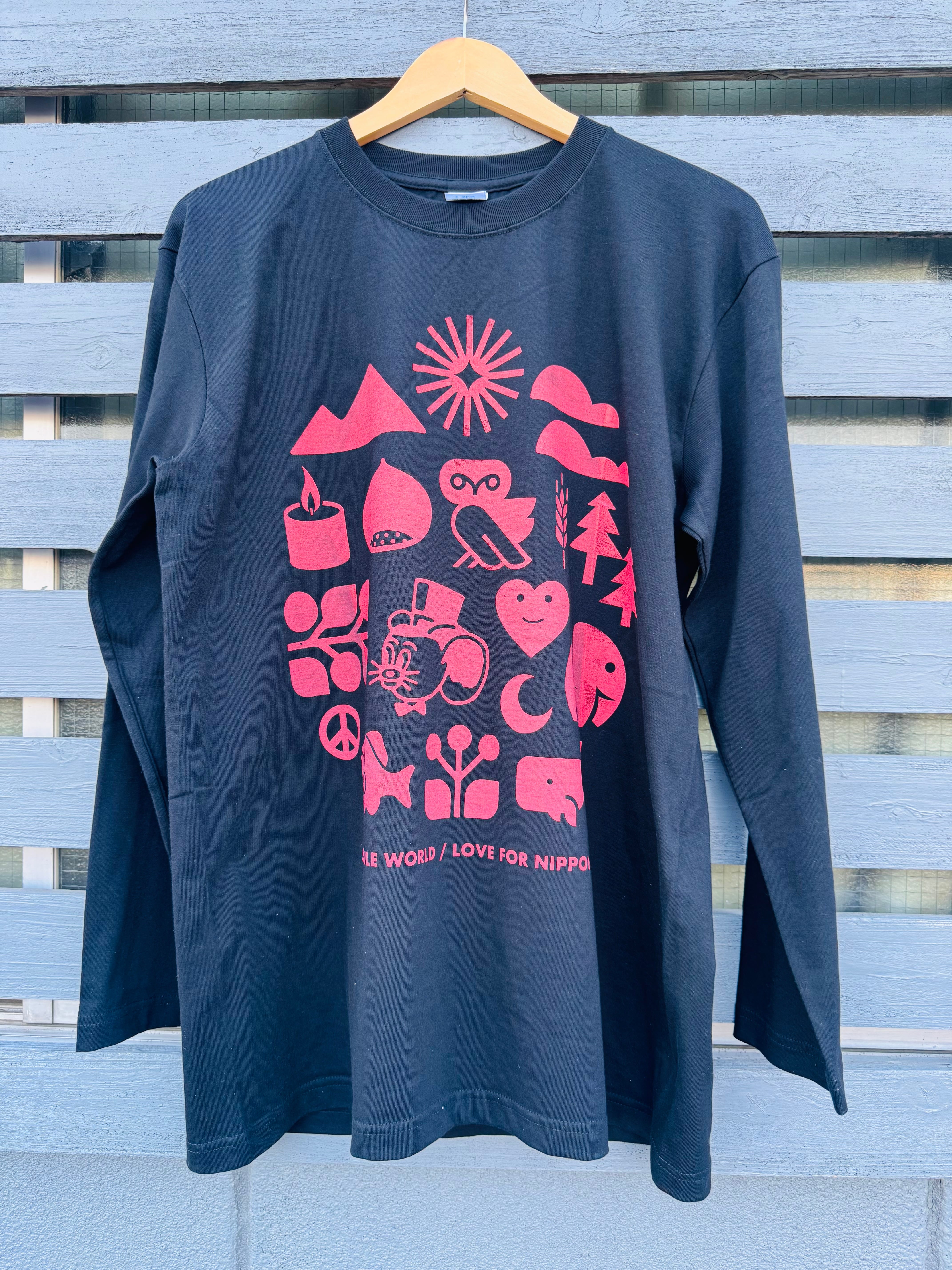 SOTE × Jerry Ukai(ジェリー鵜飼) " SMILE WORLD " ロングTシャツ(LOVE FOR NIPPON)〈BLACK/FP RED〉