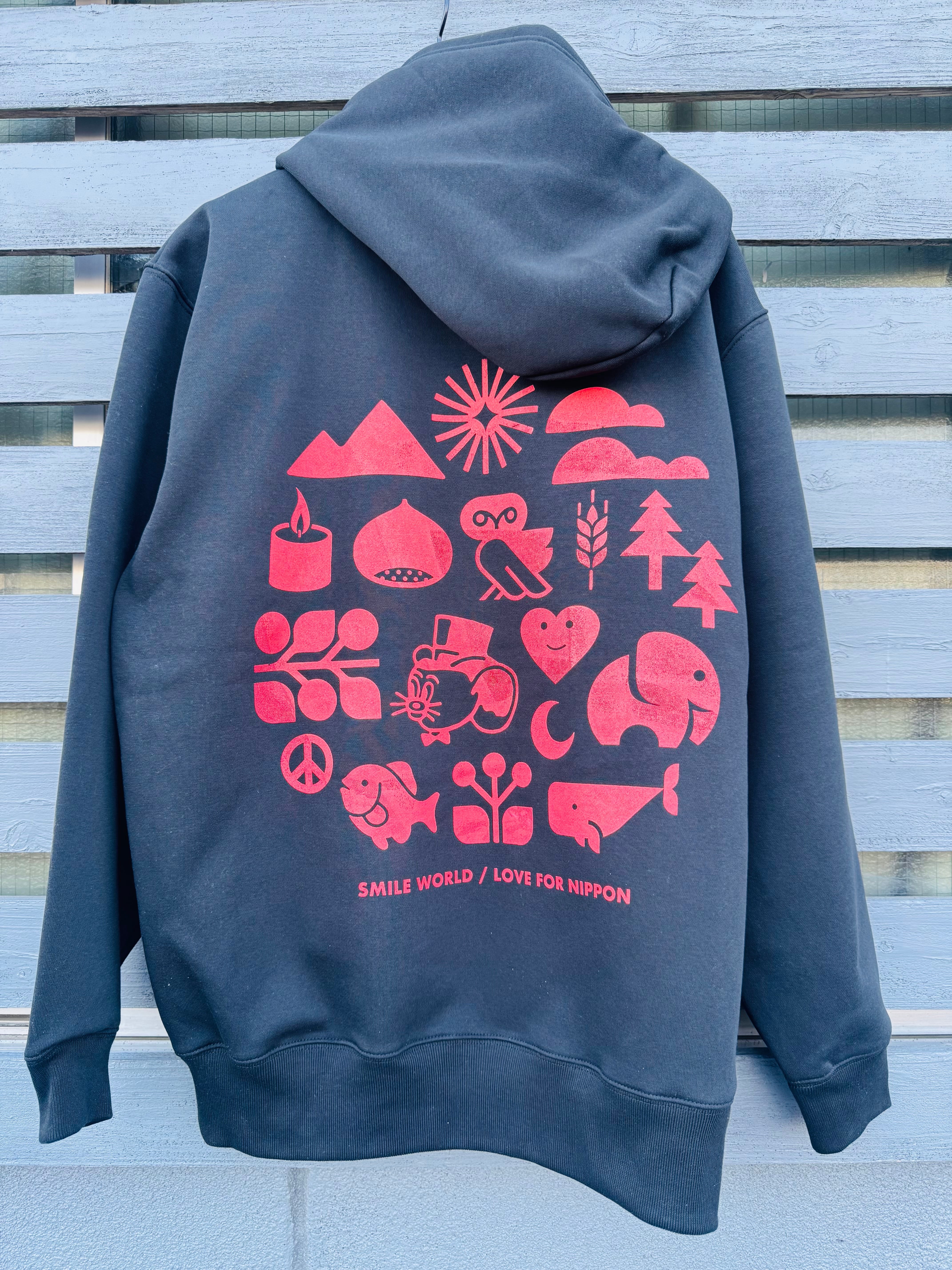 SOTE × Jerry Ukai(ジェリー鵜飼) " SMILE WORLD " パーカー(LOVE FOR NIPPON)〈BLACK/BKP RED〉