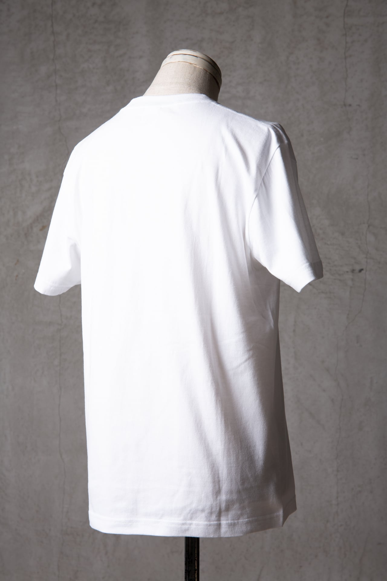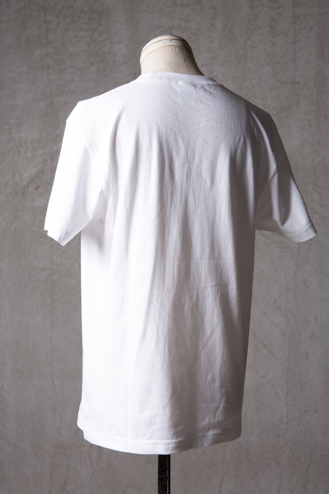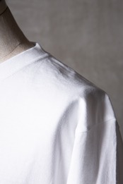 5.6oz の中肉厚Tシャツで一般的なTシャツに比べると若干肉厚であることで洗濯を繰り返しても経年劣化が少なく、また経年変化によりヴィンテージ感のある味わい深い風合いへ変わっていくのが特徴です。ベーシックなシルエットフォルムで男女問わず着用が出来るのも魅力的。