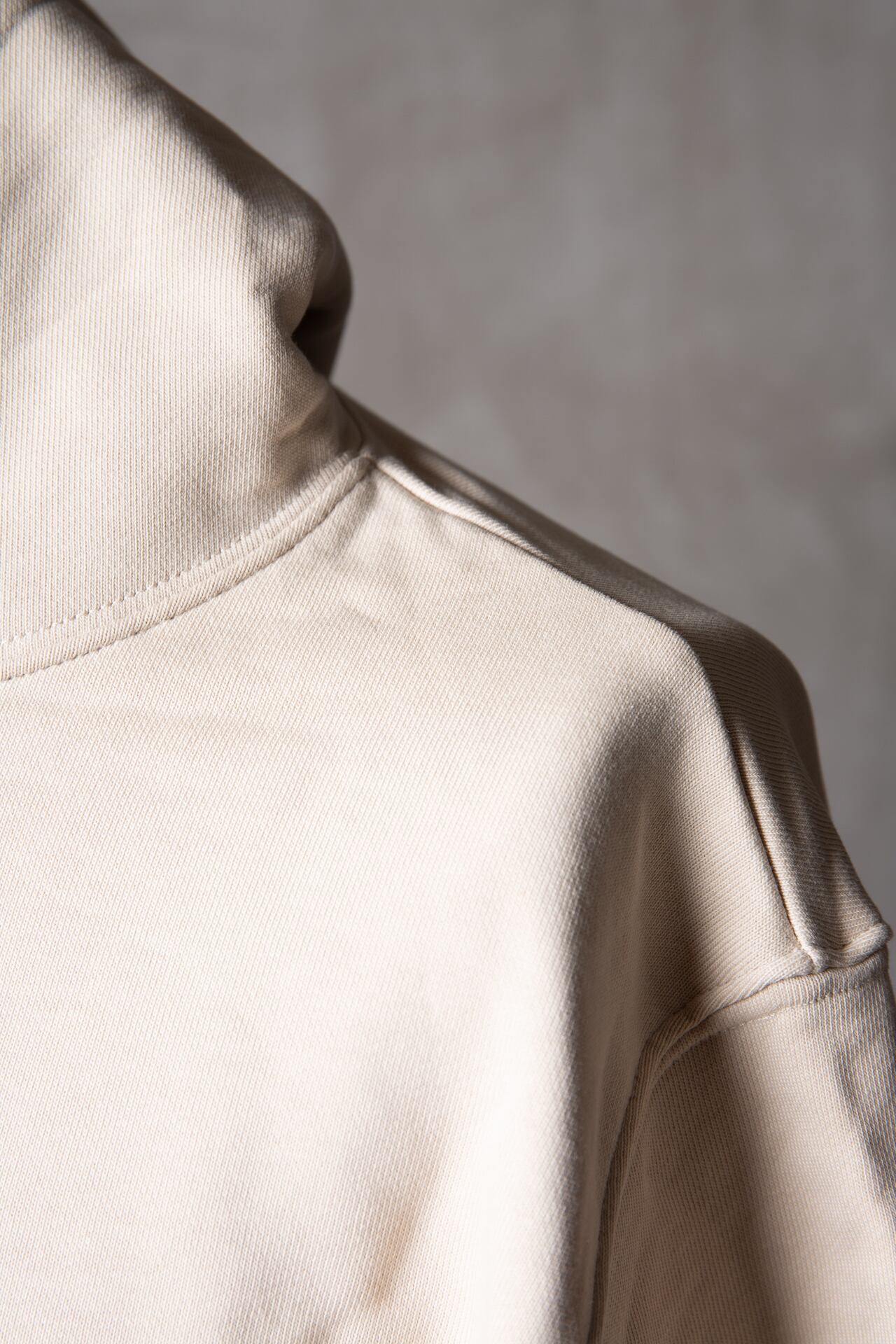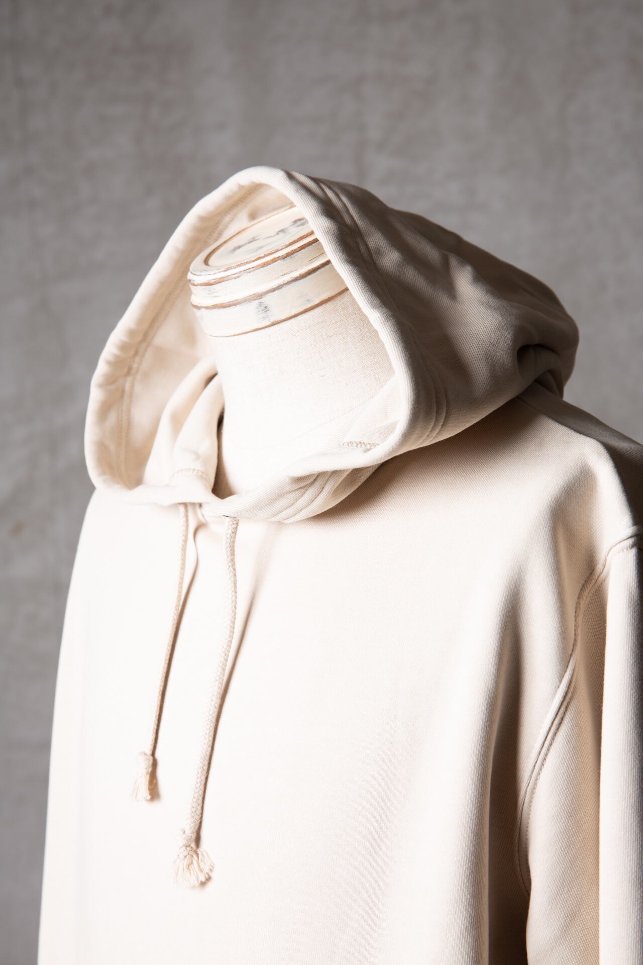 10oz でやや肉厚のパーカーで若干肉厚であることで洗濯を繰り返してもヘタリが起こらず、また経年変化によりヴィンテージ感のある味わい深い風合いへ変わっていくのが特徴です。ベーシックなシルエットフォルムで男女問わず着用が出来るのも魅力的。