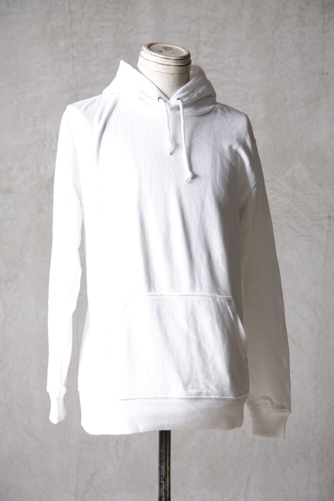 8.4oz でスウェットパーカーは軽量な素材を用いていることで春夏では1枚で着用出来、秋冬はインナーアイテムとしても重宝するちょうど良い重さを持ったパーカー。コットンベースで洗濯を繰り返してもヘタリが起こらず、また経年変化によりヴィンテージ感のある味わい深い風合いへ変わっていくのが特徴です。ベーシックなシルエットフォルムで男女問わず着用が出来るのも魅力的。