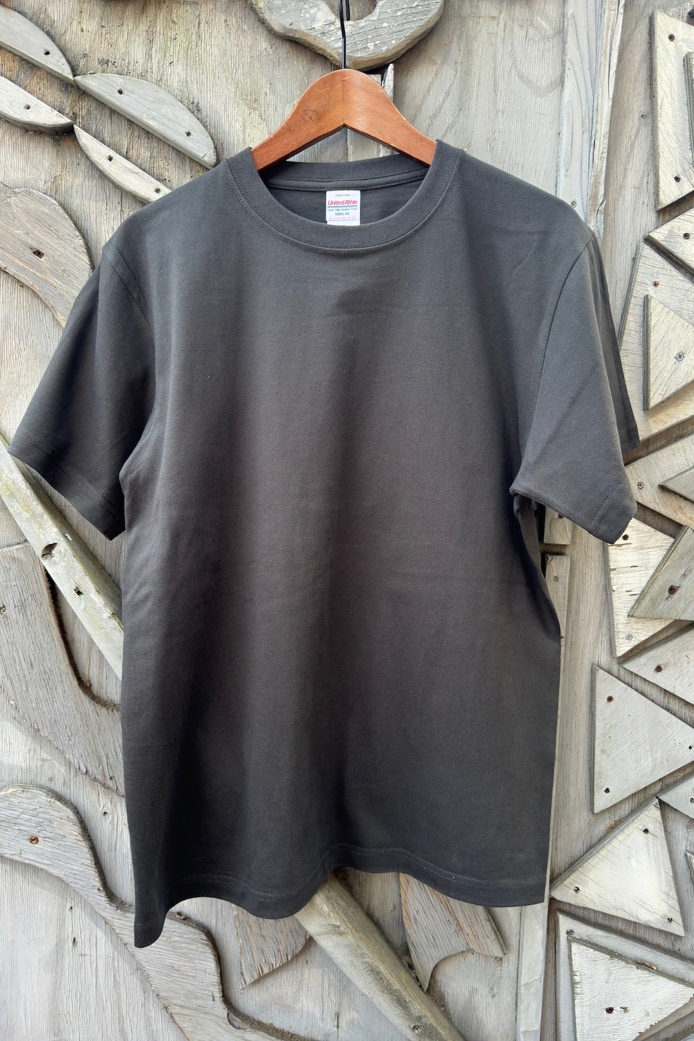 6.2oz というTシャツで一般的なTシャツに比べるとしっかりと肉厚であることで洗濯を繰り返しても経年劣化が少なく、また経年変化によりヴィンテージ感のある味わい深い風合いへ変わっていくのが特徴です。ベーシックなシルエットフォルムで男女問わず着用が出来るのも魅力的。